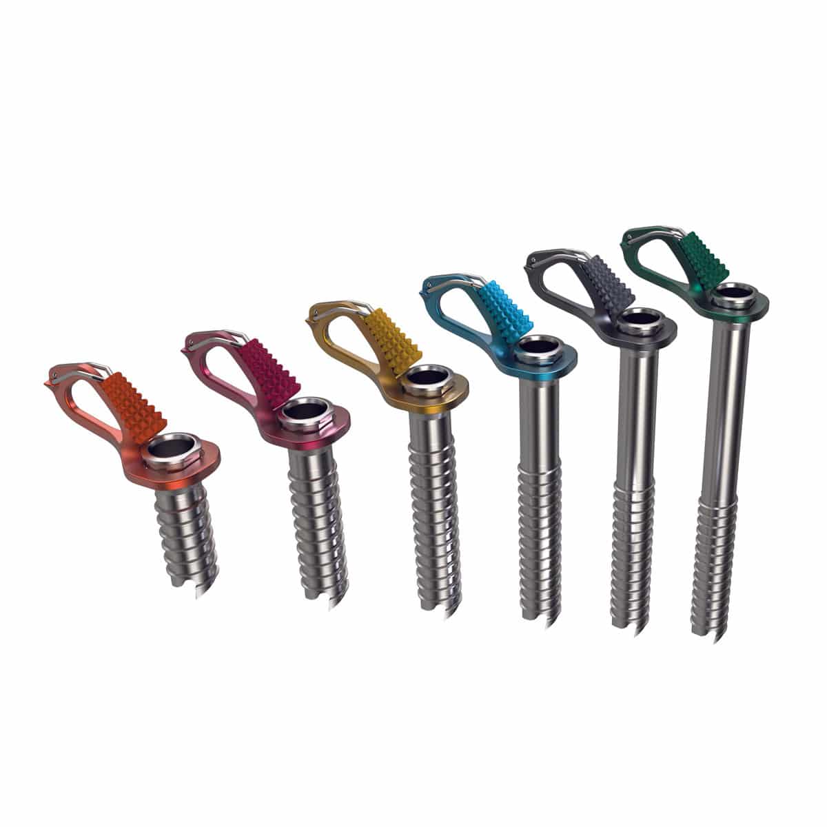 - Color-coated knob and hanger to easily identify screw lengths: RED (10cm-76g), GOLD (13cm-90g), BLUE (16cm-100g), GREY (19cm – 111g), GREEN (22cm-121g)
