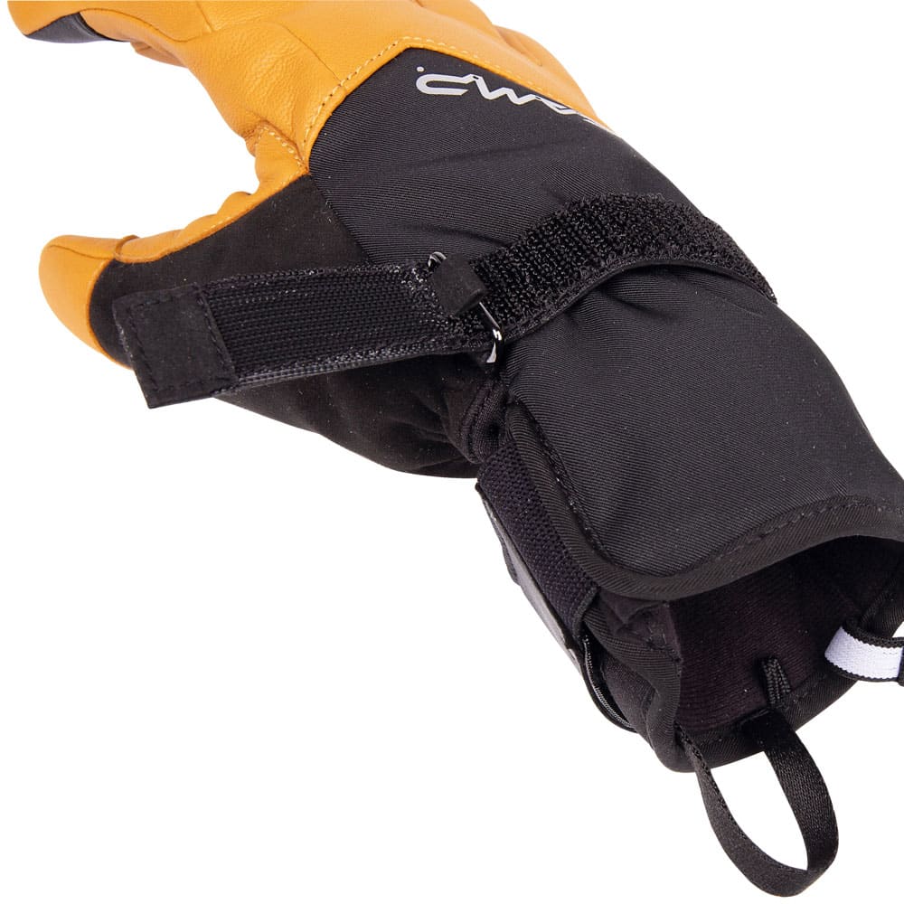 - Palmo, dorso e dita in morbida e resistente pelle di capra, idrorepellente e traspirante