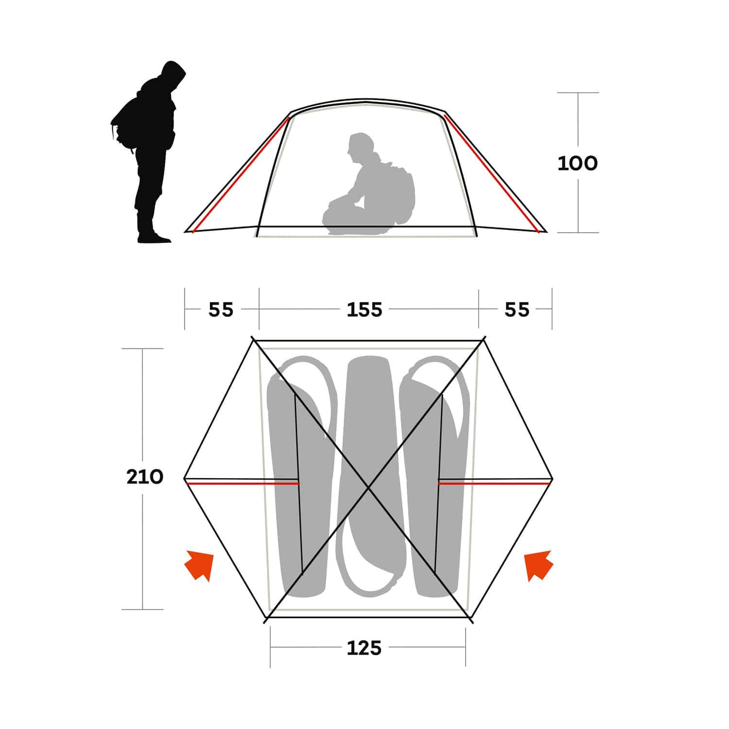 - Cuciture nastrate nel doppio tetto e nel pavimento per garantire totale impermeabilità