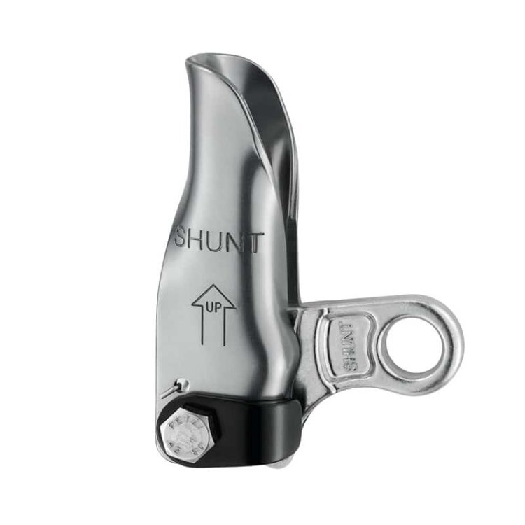 Used below the rappel device, the SHUNT works as a rappel back-up and replaces friction hitches like the Prusik. Works on single and half ropes.