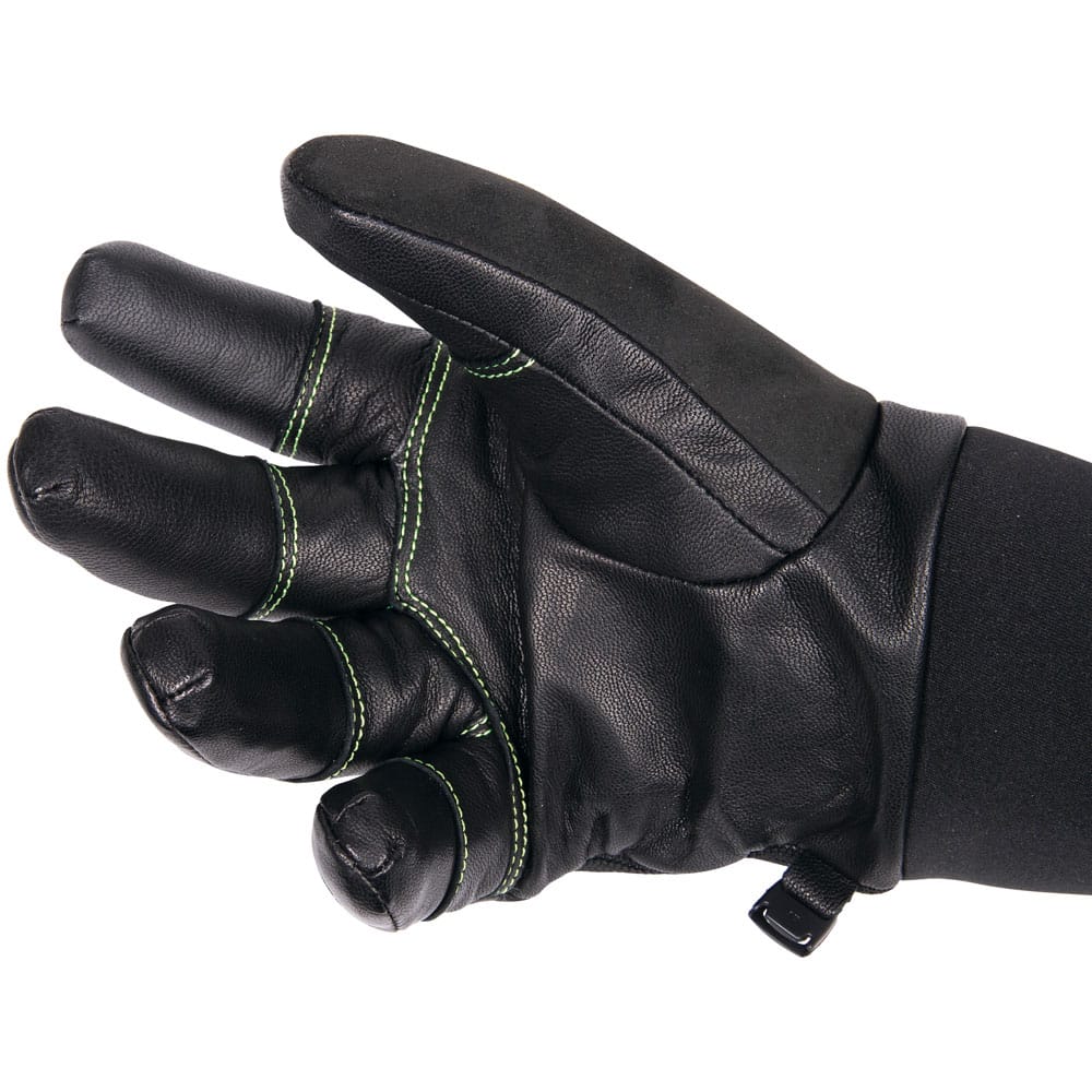 - Palmo e dita in morbida e resistente pelle di capra, idrorepellente e traspirante