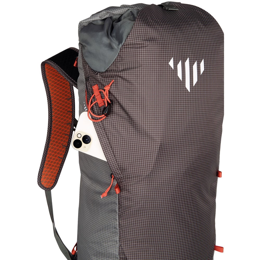 Il Camp M-Tech 30 è uno zaino da alpinismo disegnato per essere portato in parete. Comodo, leggero e funzionale, presenta una forma stretta e allungata, con un design essenziale, per garantire il massimo comfort durante la scalata. Con una capacità di 30 litri, è ideale per le ascensioni più lunghe e impegnative che richiedono una maggiore quantità di equipaggiamento. Gli spallacci sono anatomici, con imbottitura in EVA da 6 mm e particolarmente larghi nella parte superiore per consentire un’eccellente distribuzione del peso sulle spalle. Gli attacchi inferiori sono in posizione rialzata per mantenere lo zaino il più possibile aderente alla schiena, assicurando stabilità, libertà di movimento e nessuna interferenza con l’imbragatura e il materiale. La tasca interna rimovibile può essere usata separatamente oppure riposta nella parte superiore dello zaino, sopra il resto del contenuto, per avere immediatamente a disposizione accessori e altri oggetti (telefono ecc.). La patella di chiusura è studiata sia per fornire ulteriore protezione al contenuto dello zaino in caso di maltempo sia per servire come porta corda.
