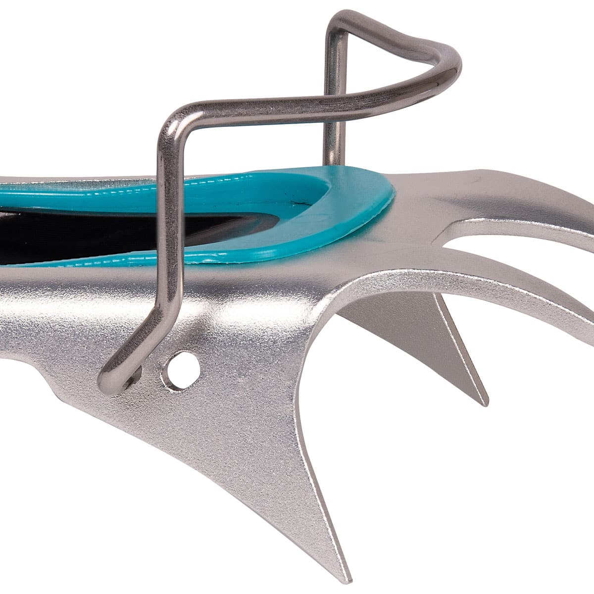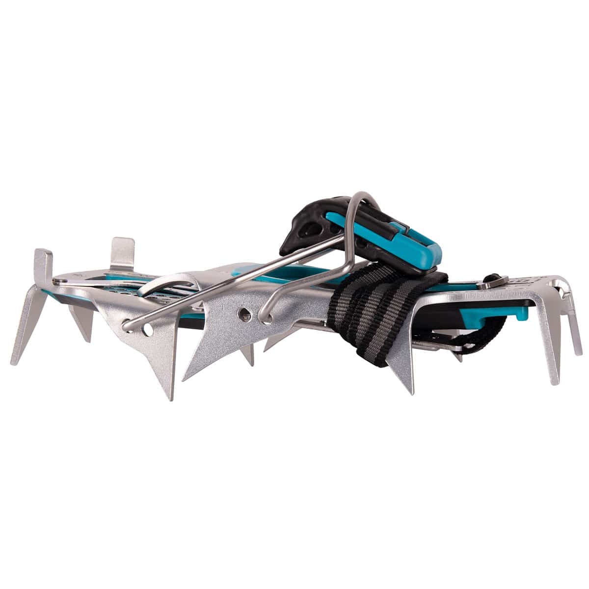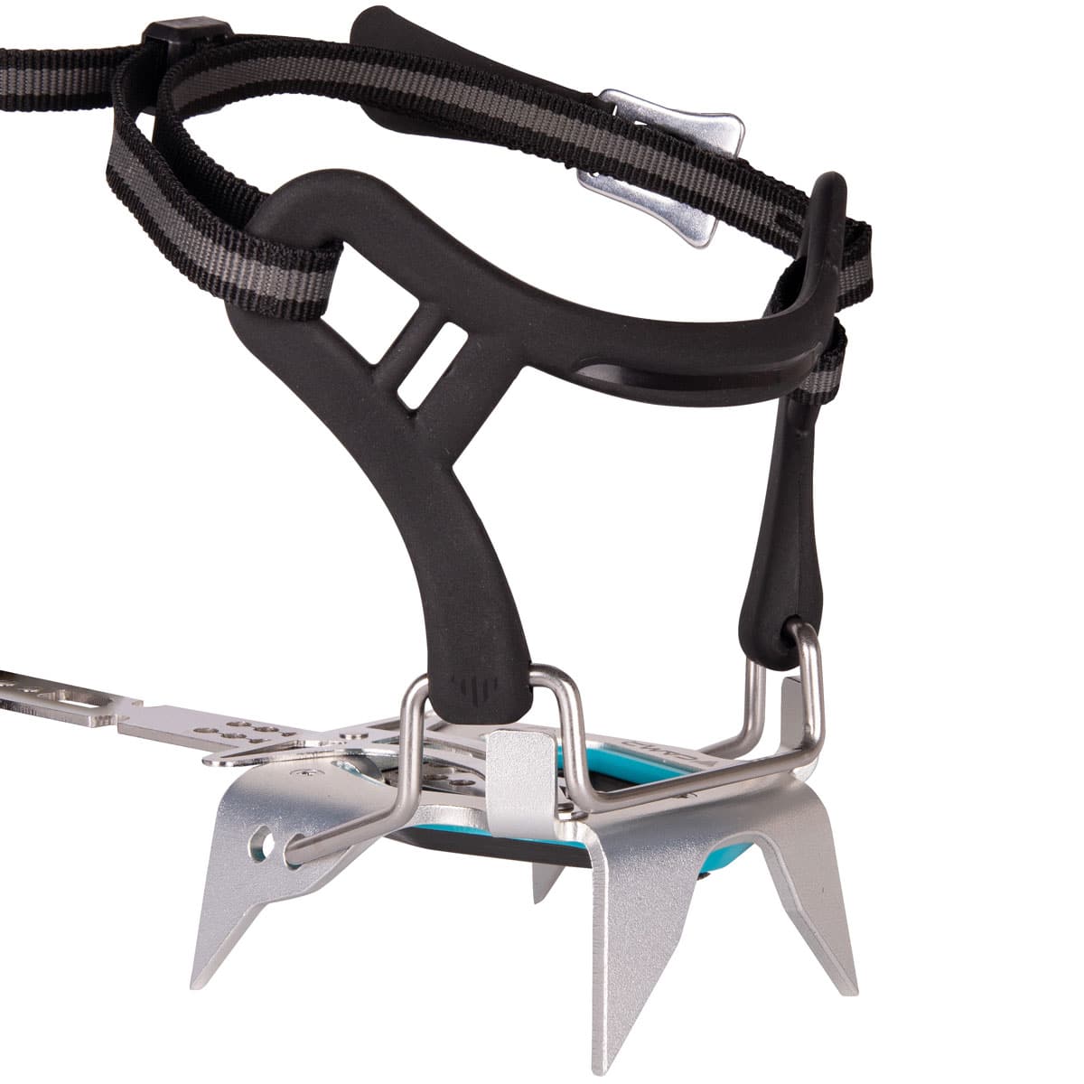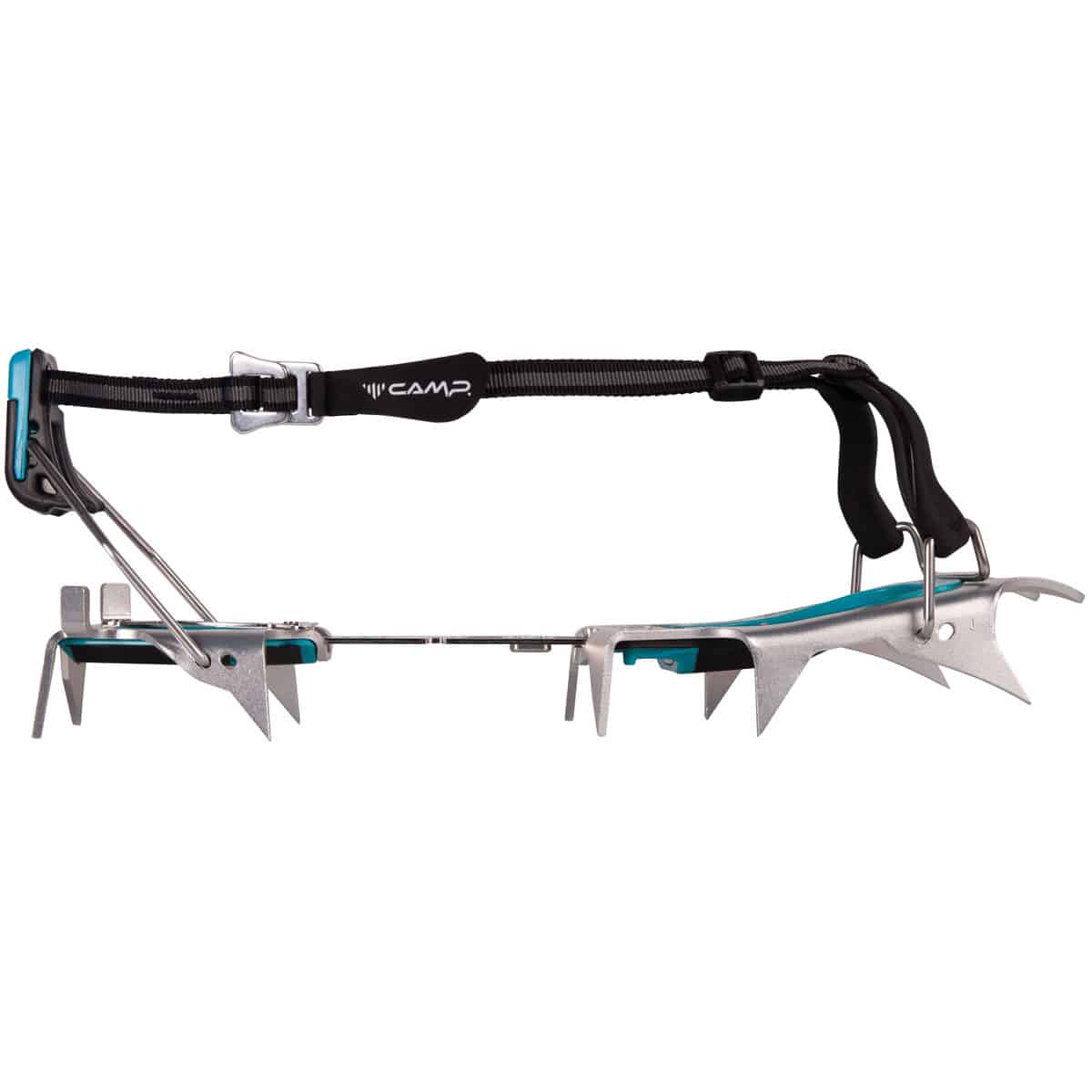 - Il fermo in fettuccia installato sull’asta di regolazione permette di ripiegare i ramponi per minimizzarne il volume durante il trasporto