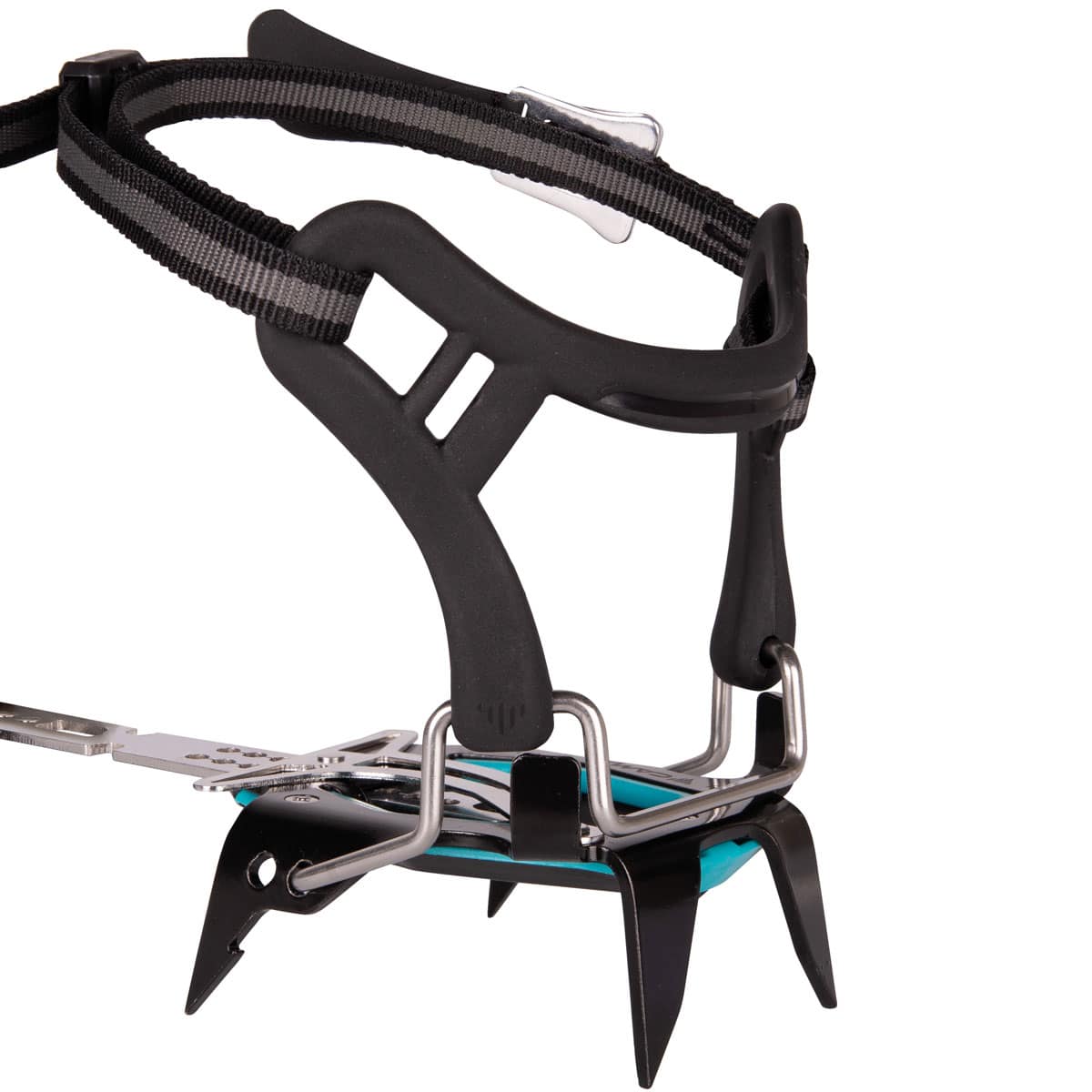 - Il fermo in fettuccia installato sull’asta di regolazione permette di ripiegare i ramponi per minimizzarne il volume durante il trasporto