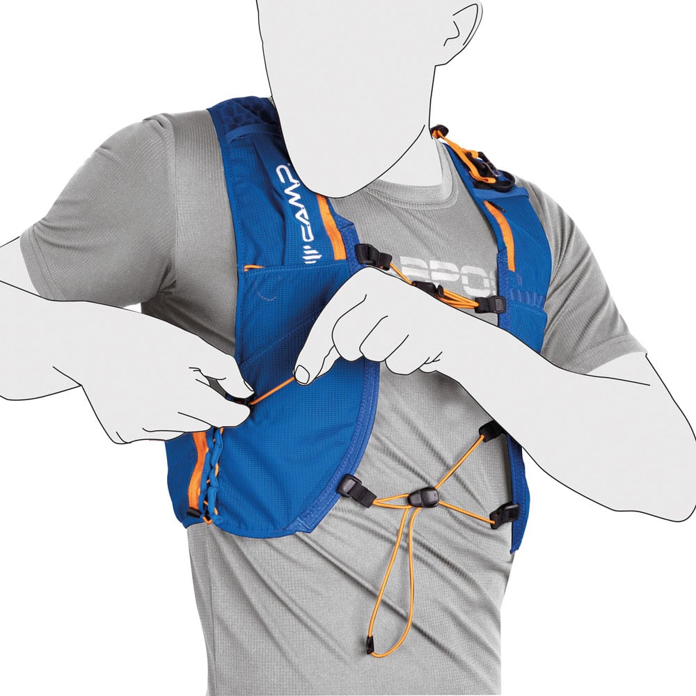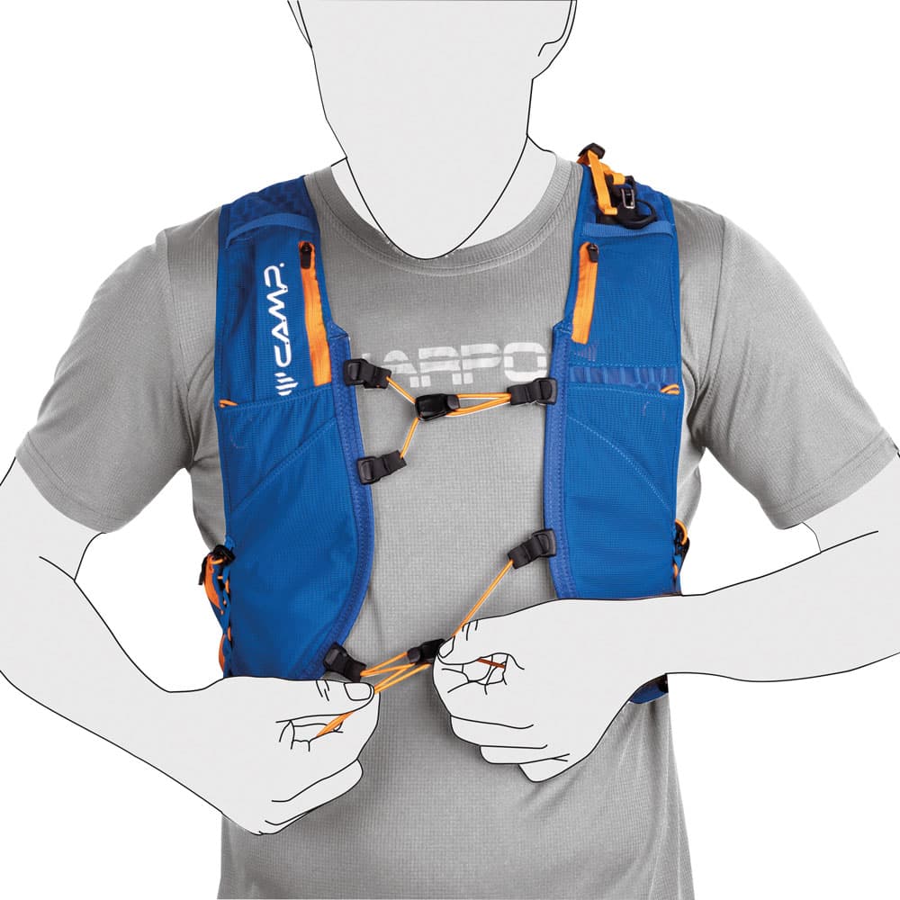 Ancora più compatto, leggero ed essenziale del Trail Force 5, il Trail Force 2 accoglie l’indispensabile per le uscite di allenamento e le competizioni più brevi. In uno zaino-gilet come questo, dalla costruzione estrema, ogni dettaglio fa la differenza: le numerose tasche consentono di accedere immediatamente a bevande, cibo e accessori mentre l’innovativo sistema porta bastoncini, derivato dal porta sci X-Press degli zaini da scialpinismo, consente di riporre o estrarre rapidamente gli attrezzi senza fermarsi. Il sistema presenta elastici separati con clip da fissare direttamente a ciascun bastoncino (appena sotto l’impugnatura) prima della gara. Un apposito moschettone permette di collegare tra loro gli elastici (e quindi i bastoncini) e di fissare rapidamente questa estremità degli attrezzi a una delle asole posteriori dello zaino. L’altra estremità (quella del puntale) si fissa invece mediante un gancio (dotato di elastico, regolabile e rimovibile) a uno degli spallacci. Alla funzionalità si aggiunge il comfort, grazie anche alla costruzione in due tessuti diversi con parte inferiore in morbida mesh elastica, traspirante e super leggera.