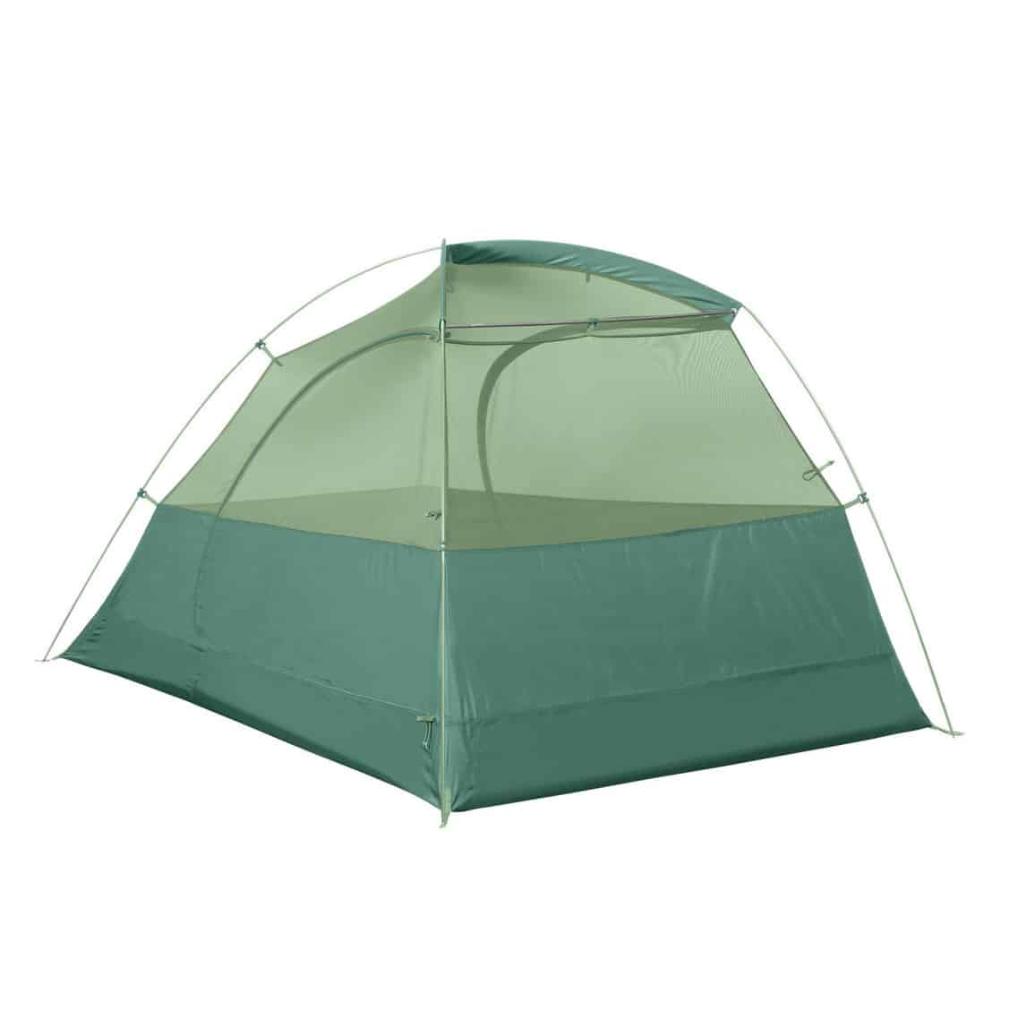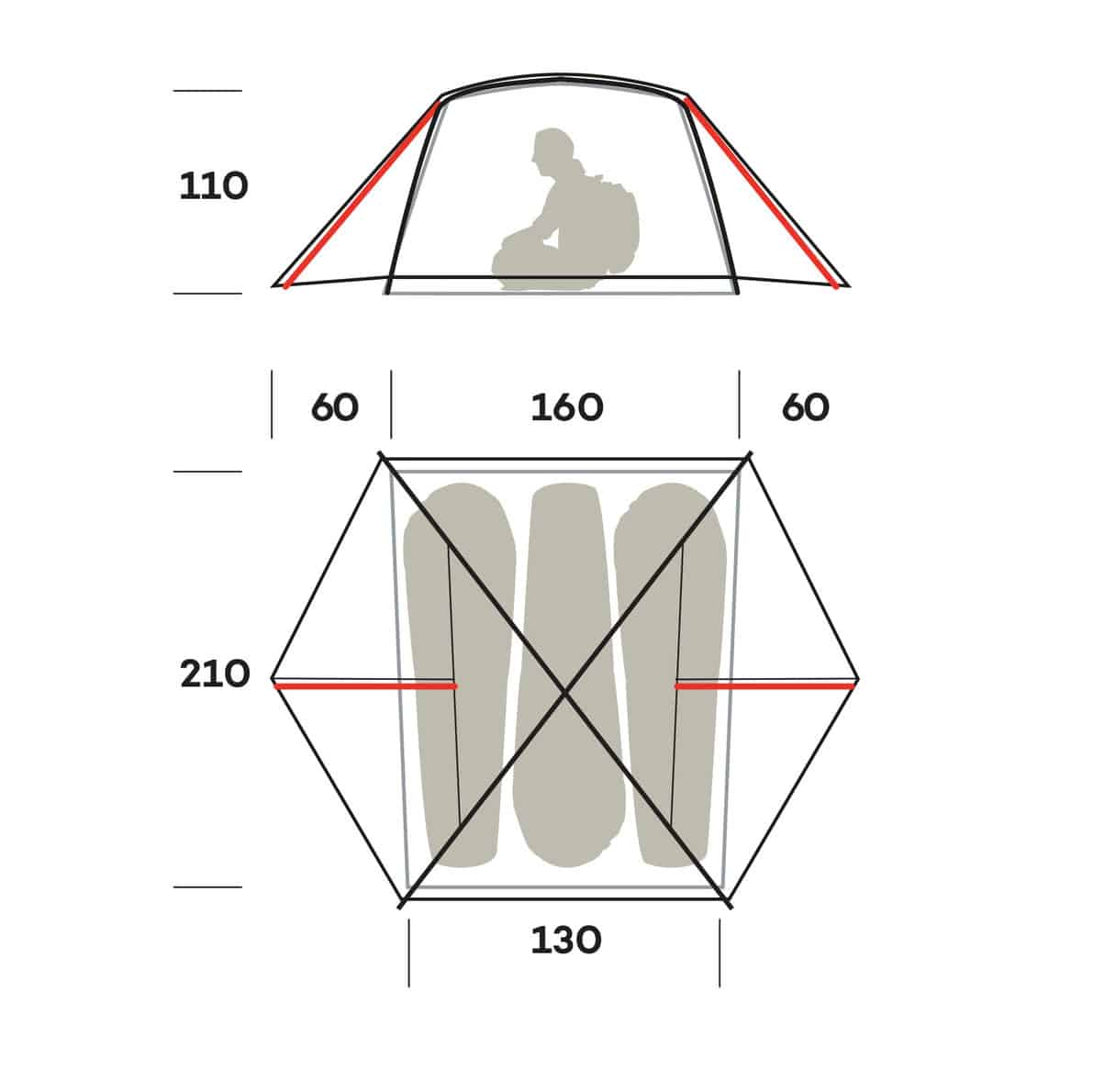- Materiali: Doppio tetto in 100% Recycled Poliestere Ripstop 70D, 85 g/m2, spalmatura poliuretanica, impermeabilità 3000 mm, idrorepellente, trattato FR | Interno in zanzariera trattato FR | Pavimento in 100% Recycled Poliestere 70D, 95 g/m2, spalmatura poliuretanica, impermeabilità 8.000 mm, trattato FR | Cuciture nastrate nel doppio tetto e nel pavimento per garantire totale impermeabilità | Costruzione a tre strati per rinforzare gli angoli del catino